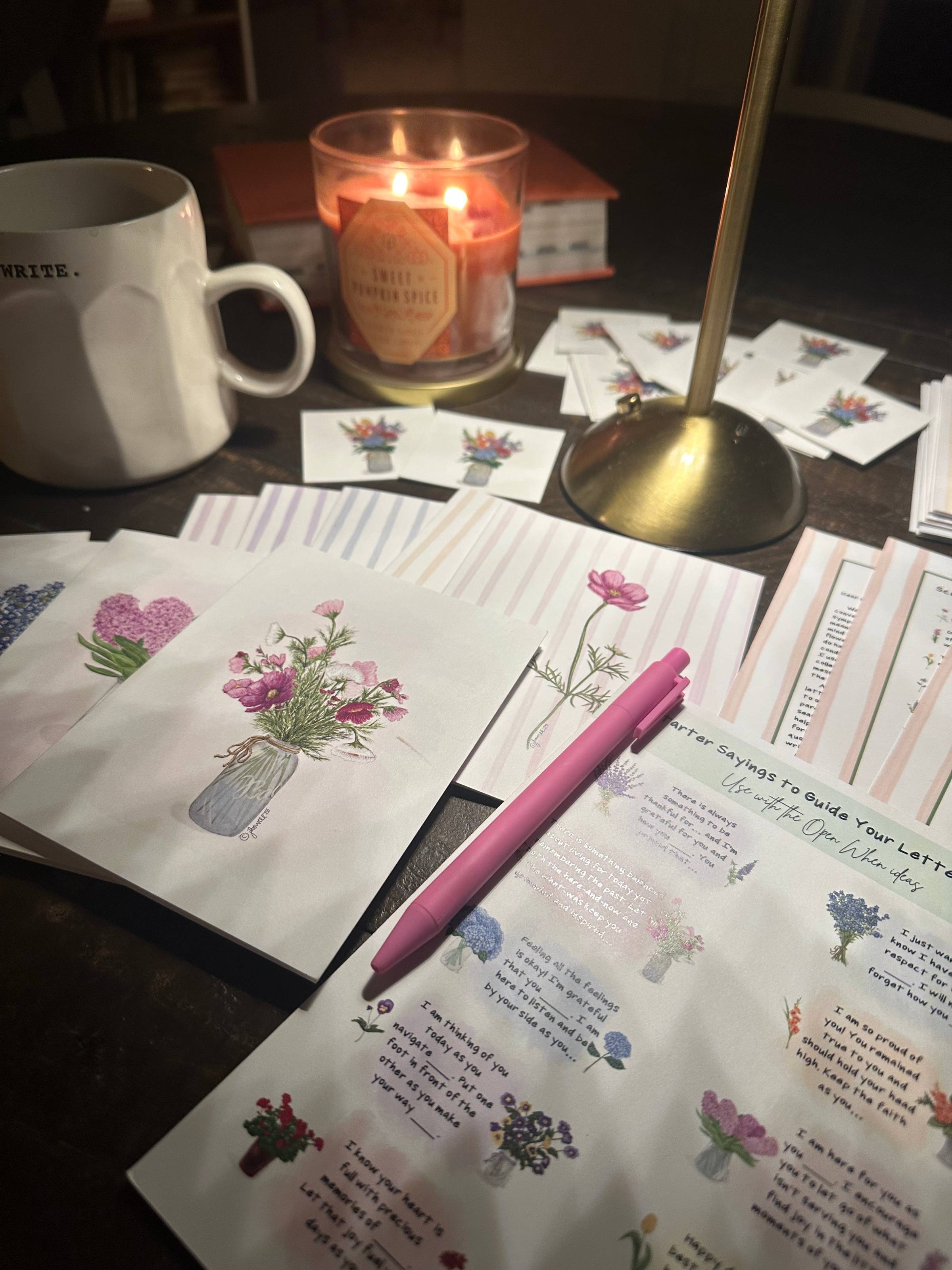 Earlier in the summer, I was in touch with a friend of mine who was preparing to send her oldest baby to college. She is a single mother with a lot on her plate and manages so much on her own. I decided to use a handful of my floral cards to write Open When cards for my friend to have this fall. I love that this collection can be used for any and everyone. If you know someone feeling the range of emotions that life brings, there is a card in the set that can be used!