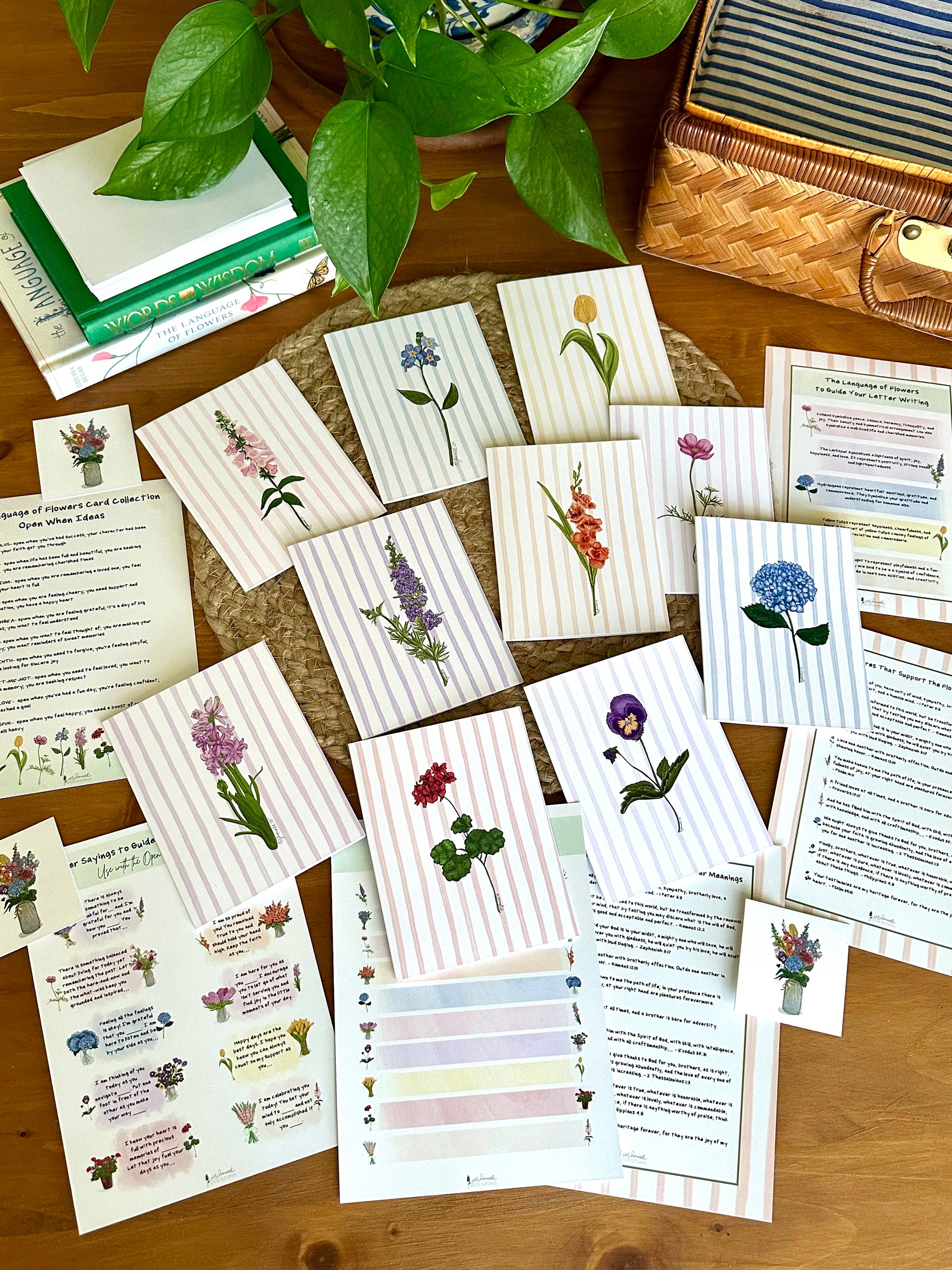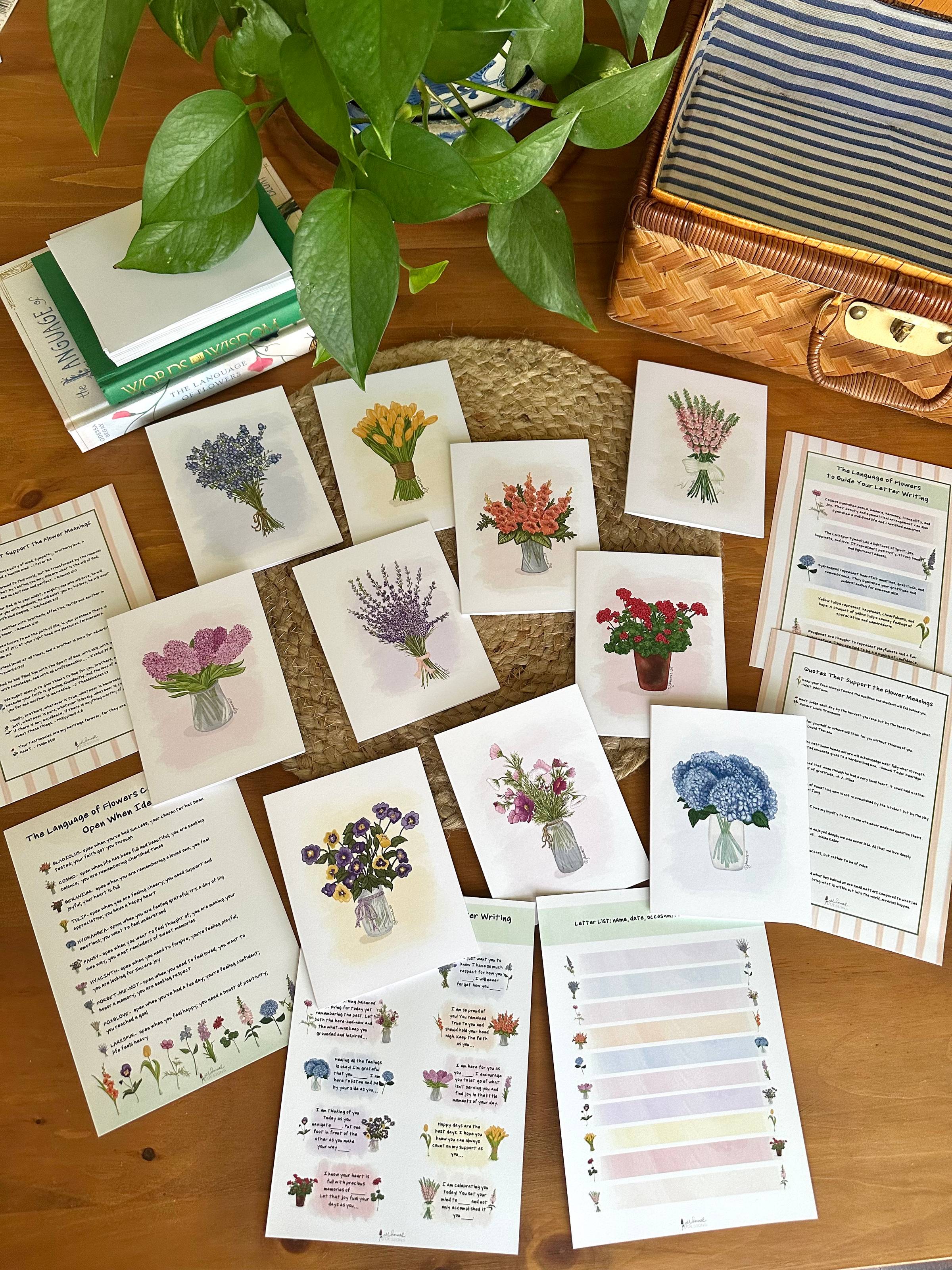 In my last newsletter, I shared how I used this collection to write ‘open when’ cards for my youngest two daughters. When I first began to brainstorm for my new Language of Flowers card kit, I knew I wanted to create stationery that was both meaningful and intentional for both the card writer and the recipient.