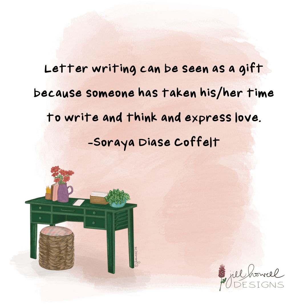 An easy, doable practice to combat loneliness is letter writing and I not only create resources to make this more doable, I make art for stationery products as well. I love drawing and illustrating, using color and texture to create whimsical art and I truly love that my cards will be used for letter writing and connecting with others. I don’t want my products to sit in a drawer! My newsletter gives weekly ideas, resources, and research to inspire readers to connect with others through sending snail mail.💌